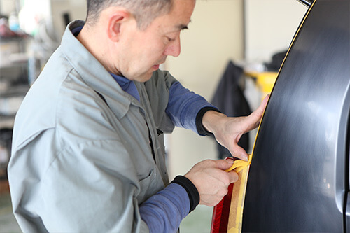 カーケアフラッシュでは板金技術に優れたスタッフが多く在籍しています。技術が問われる工程ですので丁寧にかつ、細かな作業として注意深く元の状態へと近づけます。